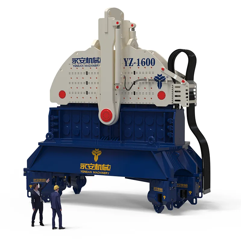 Pour les projets de grande envergure, nos vibrofonceurs hydrauliques de grande taille offrent des performances optimales avec des plateformes universelles, des circuits d'huile intégrés et un design de roulement haute capacité. Ils fournissent une gamme de forces centrifuges maximales allant de 4185kN à 15790kN. Nos marteaux fournissent une force de battage puissante, idéale pour enfoncer ou extraire des pieux tubulaires en acier de grand diamètre, améliorant ainsi la densité du sol et la capacité portante. Ces marteaux polyvalents sont les solutions de choix pour la construction d'infrastructures civiles, de ponts maritimes, de fermes éoliennes offshore, de ports et de plateformes pétrolières, offrant un soutien fiable pour les fondations. Avec des options de personnalisation disponibles pour différents scénarios d'utilisation, nos marteaux répondent à vos exigences, assurant le succès de chaque projet.