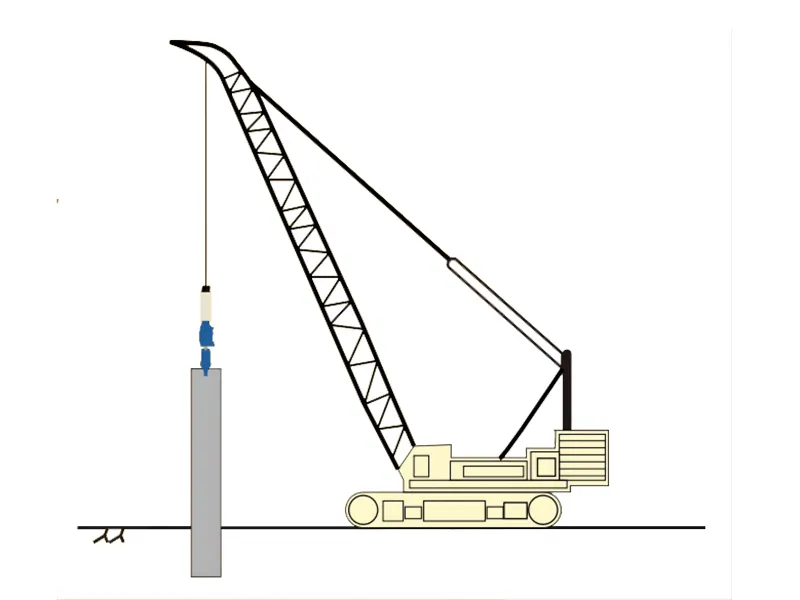 Les marteaux peuvent être suspendus par des grues sur chenilles pour l'opération.
